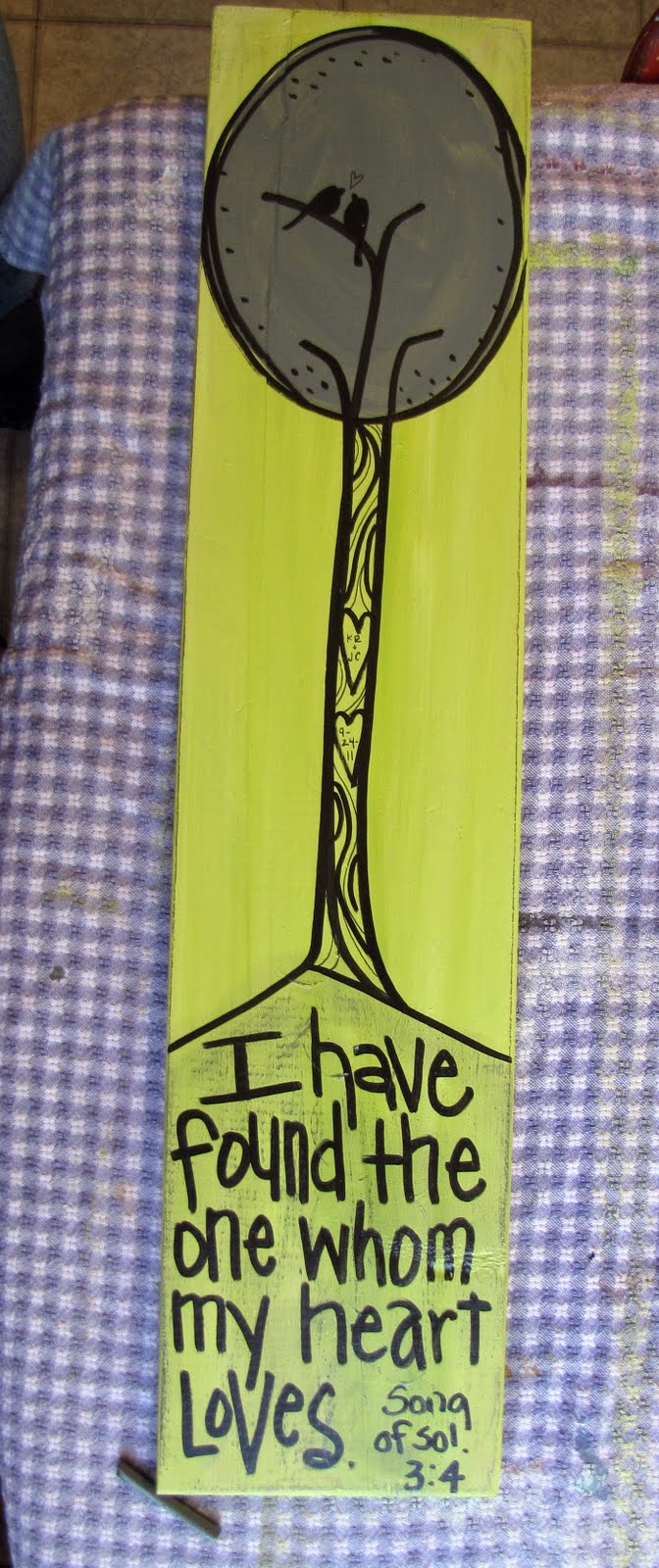 I love this quote! It's for a bathroom wall for a family of six (you can't see them very well, but there are six little birdies in the trees)
